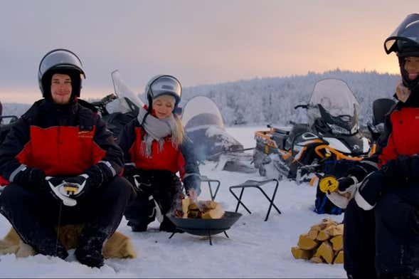 Per sentirci come dei veri lapponi, accenderemo un fuoco all'aria aperta. Riuniti attorno al tepore delle fiamme, faremo il pieno di energie con una bevanda calda e un pranzo tipo barbecue. Dopo questa insolita avventura nei dintorni di Rovaniemi, faremo ritorno in città e vi riaccompagneremo agli hotel di partenza. La durata approssimativa del tour sarà di quattro ore e mezza, anche se dipenderà sempre dalle dimensioni del gruppo e dalle condizioni meteorologiche.