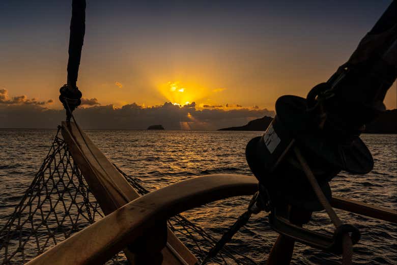 Dopo aver nuotato in queste calde e accoglienti acque, torneremo alla barca per iniziare a navigare intorno alla Caldera di Santorini. Durante il viaggio di ritorno, potrete scattare magnifiche fotografie del paesaggio e delle case che, letteralmente, pendono dal bordo della scogliera, il tutto in combinazione con gli splendidi colori del tramonto. Senza dubbio, un'esperienza magica nell'Egeo!