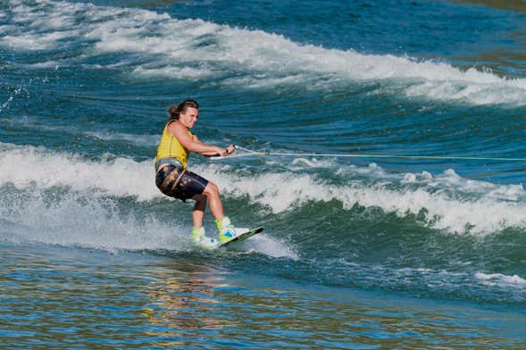 Al momento della prenotazione dell'attività, potrete scegliere tra due diverse e divertenti opzioni: sci nautico o wakeboard. Entrambe le modalità durano 20 minuti e si svolgono a Praia da Rocha Baixinha.