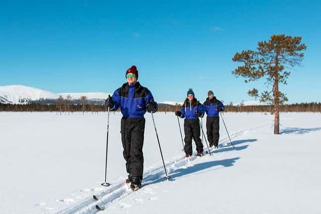 Verremo a prendervi alle 10:00 nel vostro hotel di Ylläsjärvi e ci dirigeremo verso il Parco Nazionale Pallas-Yllästunturi. Pronti a percorrere le foreste innevate come sciatori provetti?
