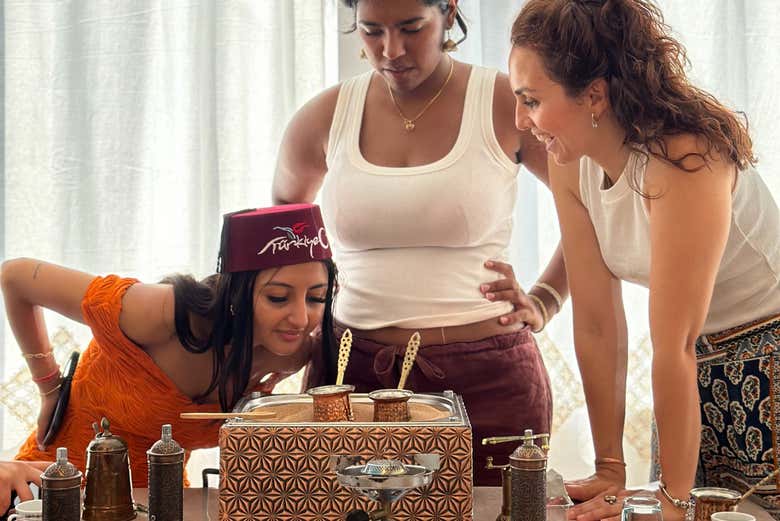 Você poderá escolher entre diferentes variedades de grãos de café e aprenderá a moê-los para criar a mistura ideal. O momento mais emocionante será quando você preparar seu próprio café usando o cezve, a tradicional cafeteira turca. Você sentirá o aroma se espalhar por toda a sala!