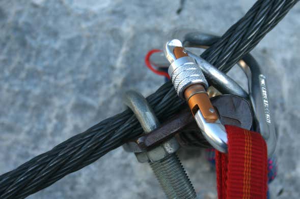 Quando estivermos na via ferrata, nos equiparemos com o material necessário e lhe explicaremos as normas de segurança que você deverá respeitar durante a atividade.
