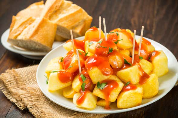Durante o tour, visitaremos cinco bares diferentes. Em cada estabelecimento, degustaremos uma tapa acompanhada de vinho da região. Você vai adorar! Entre as delícias em pequena escala que você degustará se destacam as batatas bravas, morcela com ovos de codorniz, croquetes de jamón, embutido e outras tapas típicas da Espanha.