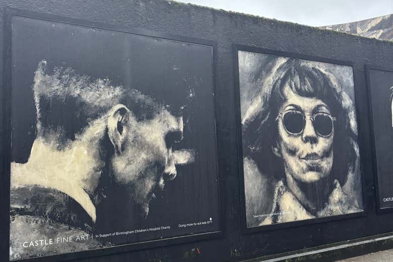 Começamos o free tour na hora marcada em frente ao impressionante mural criado por Jon Jones, retratando a família Shelby. Esse mural, localizado ao lado da New Street Station, é um símbolo de como a série transformou a imagem de Birmingham em todo o mundo. Pronto para ver a lenda dos Peaky Blinders ganhar vida? Vamos lá!