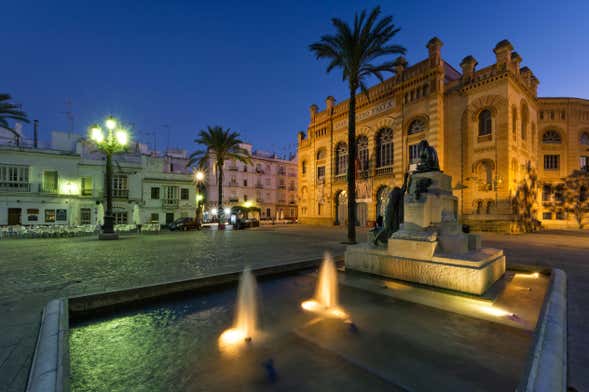 Cai a noite sobre Cádiz e seus postes começam a iluminar as ruas. Nos reuniremos na praça de San Juan de Dios de Cádiz para começar o free tour noturno pelo centro histórico de Cádiz.