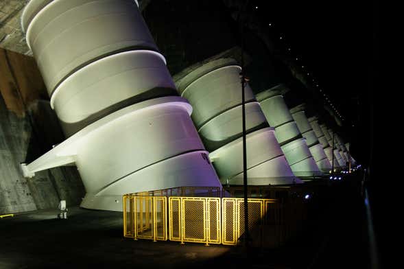 Quando estivermos lá, iremos ao mirante central da usina para desfrutar durante uma hora e meia de uma apresentação única na qual a luz, a música e a água serão as autênticas protagonistas. Isso não seria possível sem os 60 quilômetros de cabos e tubos que conectam os diferentes focos e refletores.
