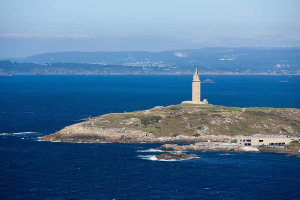 Com nossas forças restauradas, nos aproximaremos da Torre de Hércules. Antes de entrar, explicaremos a história desta antiga torre de vigia, para que mais tarde você possa visitá-la por conta própria. Vai adorar as vistas sobre o Atlântico a partir do mirante no topo!