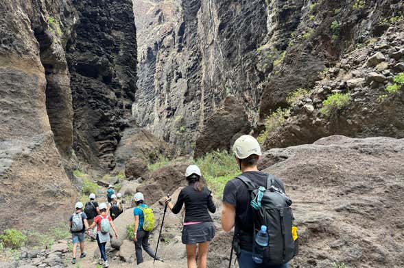 Desse lugar, iniciaremos uma descida de cinco quilômetros pelo Barranco de Masca, uma das rotas mais espetaculares de Tenerife. Você sabia que esse barranco só permite um número limitado de visitantes diários para preservar sua beleza natural?