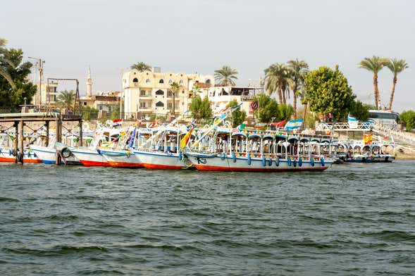 No horário combinado, passaremos para buscá-lo no seu hotel ou cruzeiro em Luxor e iremos ao porto da cidade. Lá, subiremos em uma faluca, uma embarcação egípcia típica, e seguiremos rumo à Banana Island.