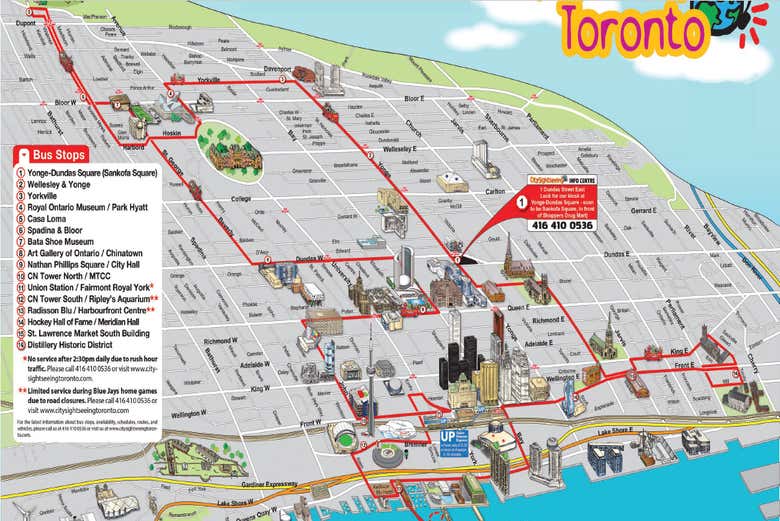 No seguinte link você poderá consultar um mapa com todas as paradas do ônibus turístico de Toronto: