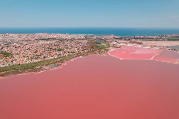 Durante duas horas, exploraremos parte do Parque Natural das Lagoas de La Mata e Torrevieja, um espaço protegido no qual percorreremos quase 4 quilômetros. Nesse tour, seremos testemunhas de uma paisagem pitoresca repleta de montanhas de sal banhadas por águas púrpuras. Sem dúvida, uma imagem realmente atípica.
